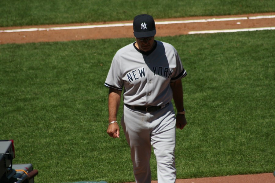 Joe Torre coming to the mound to take out Mike Mussina when the Yankees faced the Giants on June 24, 2007. Photo by Chad King.