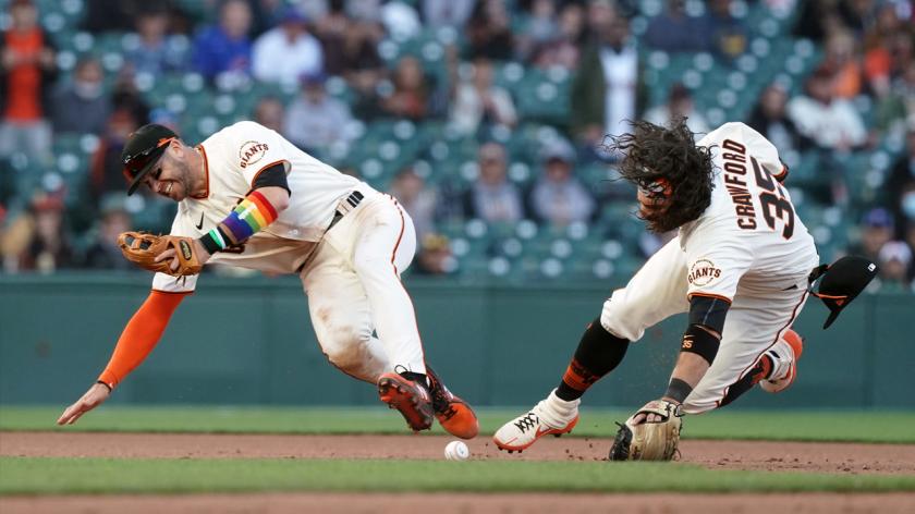 Although the Giants took 3 of 4 from the Cubs, it wasn’t all unicorns and sunshine as Longoria will be out 4-6 weeks with an injury sustained in this collision with Brandon Crawford during Sunday’s loss. (Photo from NBC Sports)